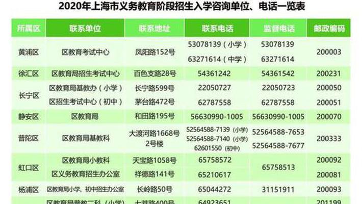 上海各区教育局公布了2020年义务教育招生细则,包括公办小学划片范围、公办初中对口方式、民办学校招生计划、本市户籍人户分离实施细则等。